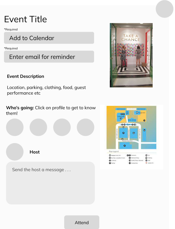 - The right page is the pop-up screen that shows up when the user clicks on 'attend'